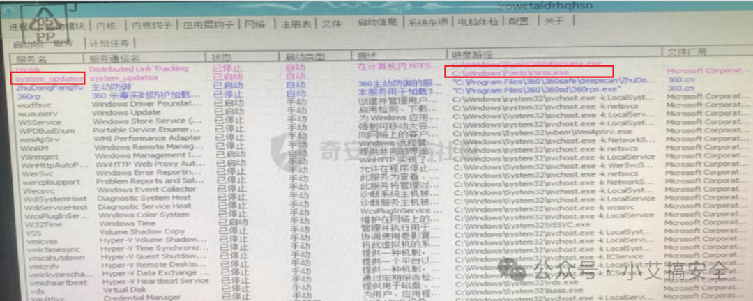 通过对该木马分析后发现该木马会创建名称为:system_updatea的系统服务