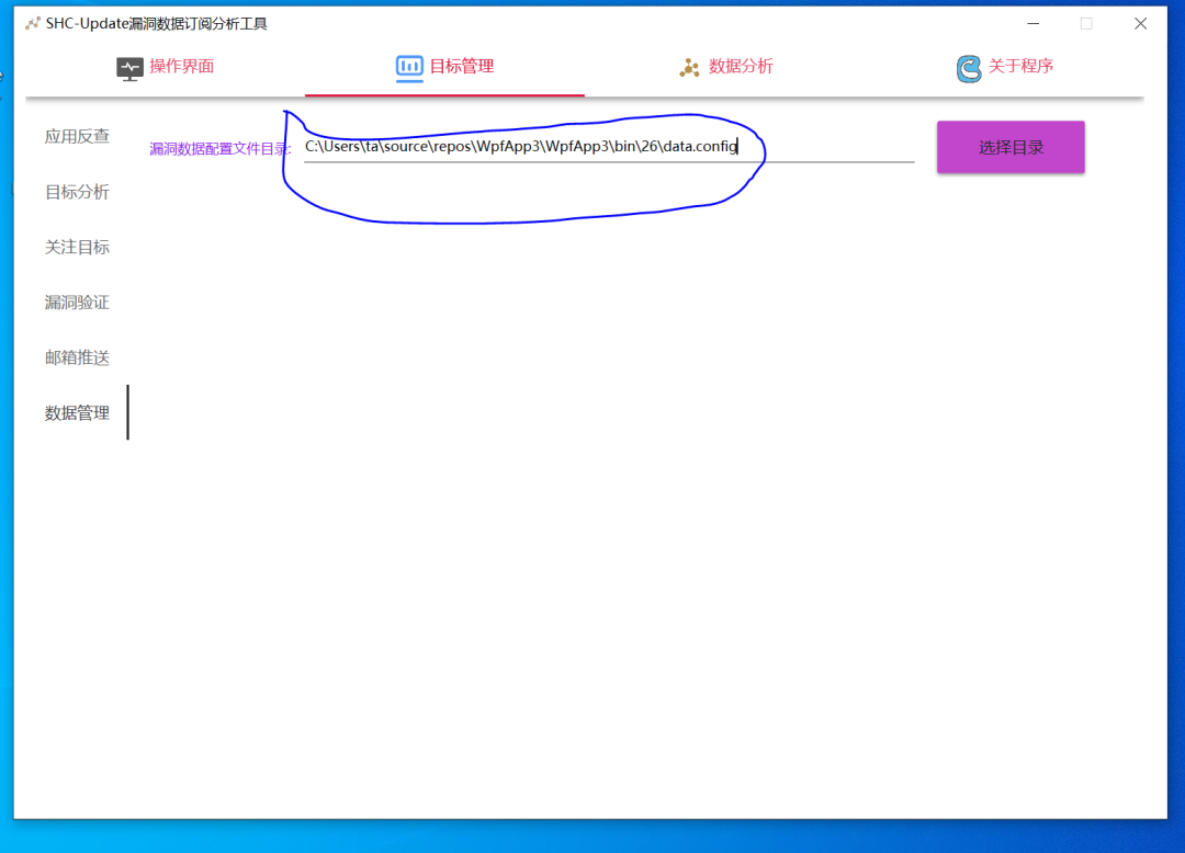 切换到“目标管理”转到数据管理选项卡,查看漏洞数据配置文件目录路径;