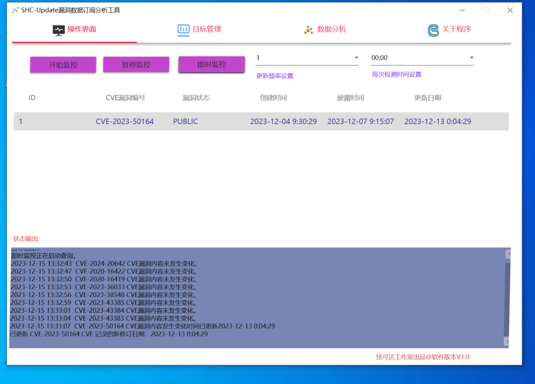 运行SHC-Update漏洞数据订阅分析工具.exe