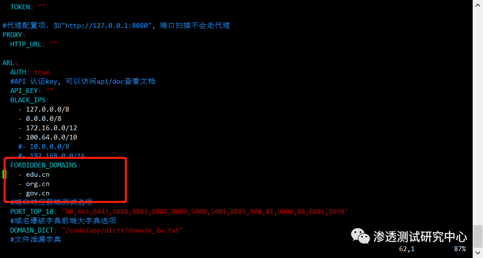 因为ARL在配置文件里设置了黑名单,有时候项目为GOV或者EDU之类的时候无法进行扫描,所以在这里修改一下配置文件就可以解除限制。