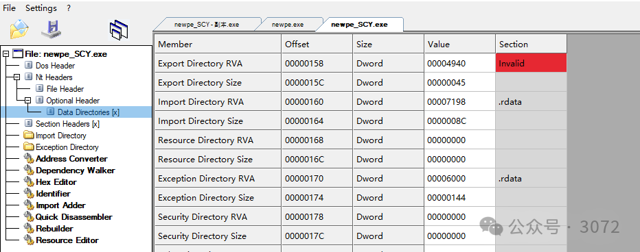 在手工修复的过程中可以找个正常的PE对比,就能很方便的知道怎么修改dump文件的各种值了