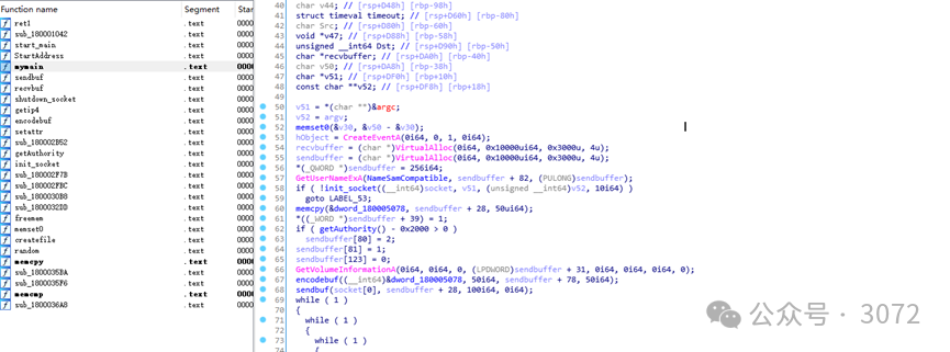 该样本通过socket进行通讯,会收集受害机器的用户信息,磁盘信息,权限信息