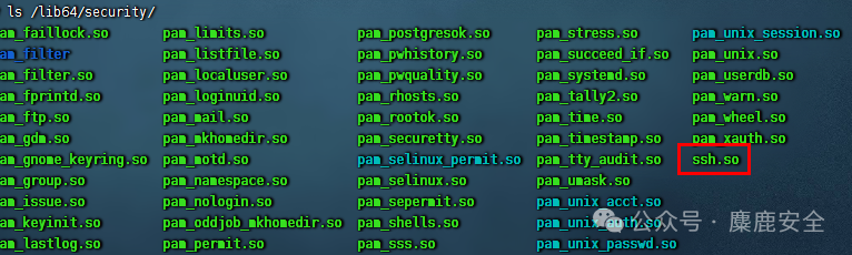 另外/lib(/lib64)/security/里存放了系统所有的PAM模块,我们在/lib里导入一个我们自定义的PAM模块,并在/etc里对应程序的配置文件里以加载动态库的形式导入该PAM模块,首先监听ssh su sudo