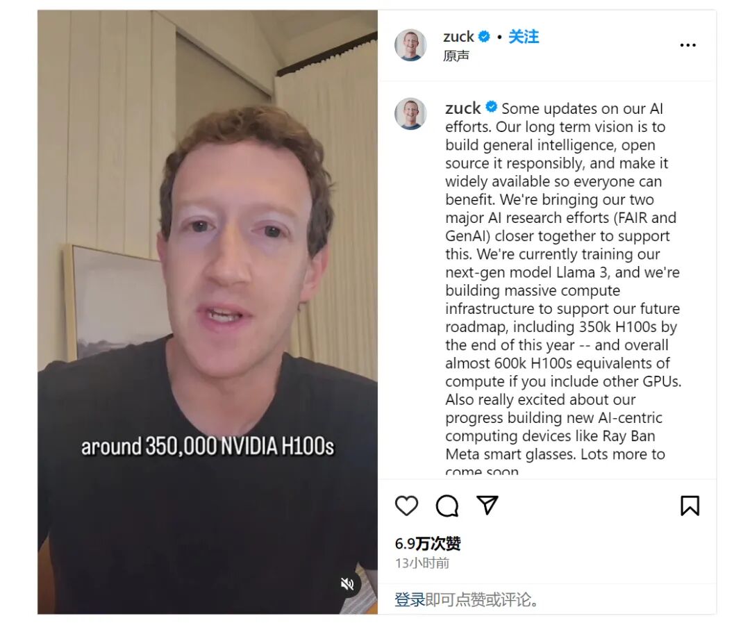 继 Altman 首次曝光 GPT-5 后,扎克伯格也表示正在训练 Llama 3。扎克伯格在 Instagram 上更新动态,透露「Meta目前正在训练Llama 3」,到今年年底,Meta 将拥有大约 35 万块英伟达 H100,如果包括其他 GPU,将有大约 60 万块 H100 等效算力。他还表示将现有的两个 AI 研究工作(FAIR 和GenAI)合力推进,以「支持我们建立通用智能的长期目标,负责任地开源,并使其对我们日常生活中的每个人都可用和有用」。尽管扎克伯格目前未提及更多有关 Llama 3的细节,不过他提到,智能眼镜将是重要设备,帮助人类与AI沟通,并将AI和元宇宙结合在一起,其 Ray-Ban Meta 眼镜已经有了相当大的进展。iPhone16 新增拍照按钮或可调整焦距