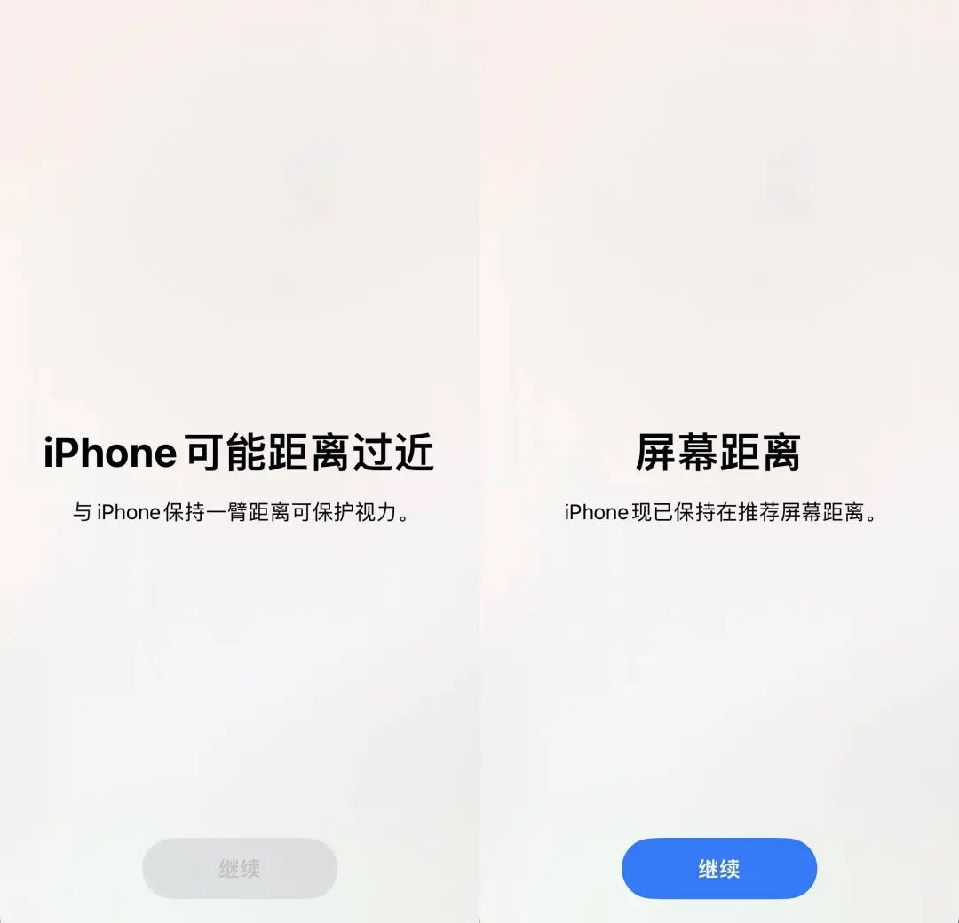 打开「设置」的「屏幕使用时间」,你就能找到并打开「屏幕距离」,接下来它将像纪律委员一般,观察你有没有遵守规则。当我在小红书刷到对「屏幕距离」的吐槽,感觉找到了同道中人。不管手机横着还是竖着,「屏幕距离」的提醒主打一个出其不意,突然占满了全屏,非要我把手机放在警戒线外。这个距离对眼睛好,但对身体的其他部位不好,我把手臂伸直,同时不自觉地抬高,姿势更像是在自拍,在地铁等公共场合可能被误解年纪轻轻就老花眼。比悲伤更悲伤的是,我玩手机的惯用姿势被影响,不仅手举着酸,对近视眼也不友好,20 厘米开外就不识字了,更别想躺着玩了,坐在工位生怕别人不知道我在摸鱼。「屏幕距离」的提醒是自动的,但让它消停是手动的。当距离到位,「继续」按钮亮起,按下才能继续愉快地玩耍。「屏幕距离」功能打开不过 1 小时,我被 iPhone 说了 20 多次。不仅如此,当提醒占满全屏,虽然什么也干不了,但该进行的功能还在进行,比如视频继续播放。网友们也有类似遭遇——玩王者荣耀被打断,回来已经被送回城,发微信语音时弹出提醒,把没说完的话发出去了。反过来想想,平时使用手机的习惯多么不健康,都快钻进屏幕里了,屏幕距离让我对过去放浪形骸的行为有了深刻的认识。如果你打开了「屏幕距离」,但把手机凑到脸上都没被提醒,可能需要检查下手机支不支持面容 ID 和 iOS 17,要不然就是你使用手机的习惯太健康了,需要反思的另有其人。不过,Business Insider 采访的一位眼科专家提醒,「屏幕距离」有总比没有好,但可能只是把问题简单化,带来虚假的安全感。更重要的是限制屏幕时间,享受户外和自然光,如果盯着手机几个小时,无论离脸 5 厘米还是 45 厘米,眼睛都会疲劳。我们能不知道这个道理吗?可在玩手机上头的时候,什么都抛在了脑后。小红书有关「屏幕距离」的帖子里,有的夸这是个宝藏功能,苹果真的有心了。但我刷到更多的、热度更高的内容,却是教别人怎么关掉这个功能的,评论区一片祥和友好的气氛——「谢谢你我的大恩人,还我躺着玩手机自由」。其实,「屏幕距离」不是一项新功能,2023 年 9 月在 iOS 17 和 iPadOS 17 推出,加入了「屏幕使用时间」的大家族。「屏幕使用时间」更是能追溯到 2018 年的 WWDC,当年 9 月在 iOS 12 推出,让每个网瘾少男少女无所遁形,列出总体的屏幕使用时间、在某类和每个 app 花费的时间、拿起手机的次数、收到的通知数量......如果数字骇人听闻,可以通过「使用限制」功能亡羊补牢,包括设定时间远离屏幕的「停用时间」、为 app 设置时间限额的「app 限额」、为少数必要 app 开白名单的「始终允许」......「家人共享」模式下,「屏幕使用时间」很适合管理 13 岁及以下的小朋友,但成熟的大人是自己管理自己,这就导致了道德和享乐两难的情况。第一次到达时间限额,可以直接选择再使用一段时间,哪怕又到达了时间限额,输入屏幕使用时间密码,还是可以延长时间甚至全天使用的。就连库克也在有了「屏幕使用时间」后发现,自己用手机太多了——「我认为我相当自律。我错了......当我开始获取数据时,我发现花费的时间比应有的多得多」。他做出了一个小小的改变:关闭 app 的通知。我和库克想法一样,但我的解决办法是至今也不想看屏幕使用时间的报告。徒增焦虑的数字,不如眼不见为净。然而,一家科技公司,为什么要在每年最重要的活动之一,告诉用户可以少用他们的设备?库克曾经在接受采访时说,苹果从来没有把「使用」作为一个关键参数,也不希望人们在设备上花费大量时间,更希望用户对设备满意、被设备赋能。就算只是对媒体说套话,和 Google、Meta 等其他科技巨头比较,苹果的收入更依赖硬件、服务,而不是广告和用户跟踪,用户在设备上花费的时间相对来讲,确实没这么重要。也是因为这样,苹果也能将「隐私保护」作为卖点。2021 年 4 月,苹果开始实行新的隐私设置——「应用程序跟踪透明度」(ATT),应用程序在跟踪用户行为、提供个性化广告之前,必须获得许可。当年 11 月,Facebook 等四家公司损失了约 98.5 亿美元的收入。智能手机成瘾已经陈词滥调的年代,数字健康和个人隐私,是同病相怜的复古话题,显得陈旧且无聊。在便捷、效率、娱乐之前,它们似乎都被视为理所当然的「牺牲」,没必要上纲上线,没必要在道德制高点说没用的废话。但其实,对个人隐私和数字健康的保护也可以具象化,被原本漠然的用户感知,甚至隐隐地包装为产品的软竞争力、操作系统的附加值。只是,用户往往是被动接受结果的一方,科技巨头不免有又当裁判又当选手、以子之矛攻子之盾的嫌疑,给人「得救之道就在其中」的幻觉——担心沉迷于智能手机?想和它建立当断则断的健康关系?想更好地管理时间?那么智能手机同样可以帮助你!谁都知道,保护眼睛的最有效方法是少玩手机,不要躺着玩手机,不要黑灯瞎火玩手机,不要把脸贴在手机,最好玩 20 分钟就暂停和休息。除了直接放下手机诸事皆空立地成佛,更健康地使用手机这件事,也是可以用手机设置提醒的。「屏幕距离」鞭策你,番茄时钟 app 们鼓励你。但和手机若即若离、难舍难分的人类,还想钻研些「旁门左道」,比如减少屏幕对眼睛的刺激,适当调整亮度,降低白点值,打开夜间模式,但这只能解一时之困,屏幕还是那块屏幕,代替不了少玩手机的终极大