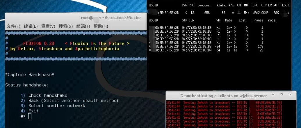 Fluxion是一款无线破解工具,通过实验可成功钓鱼到WiFi密码。在Kali-linux系统上安装Fluxion,使用Git clone下载。启动Fluxion后选择语言、网卡、通道,并自动扫描周围的无线AP。用户选择要测试的SSID并设置假AP,保存握手包路径。使用aircrack-ng开始抓取握手包,等待用户连接。通过建立假AP来钓鱼密码,用户输入密码后程序弹出登录页面。如果密码错误,继续弹出登录页面;正确时,程序结束并显示密码。用户连接真实AP,可能未察觉密码已被窃取。文章详细描述了实验步骤,但提醒新手谨慎操作。