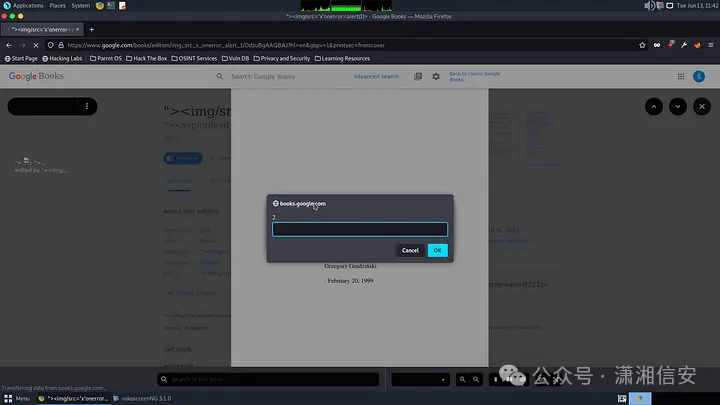 所以我想为什么不在这里尝试XSS,我在搜索栏中输入以下有效负载“><img src=x onerror=alert(1)>,然后我得到了一本书,另一位安全研究人员将其上传到 https: //play.google.com