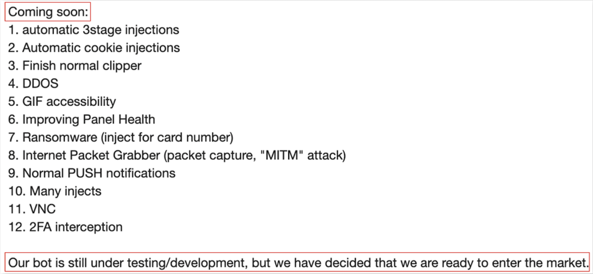 Although the malware is still under development, it’s ready to carry on fraudulent activities at scale.