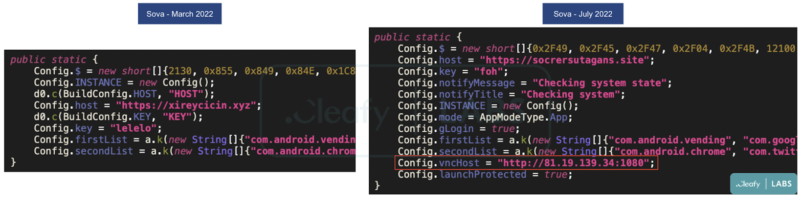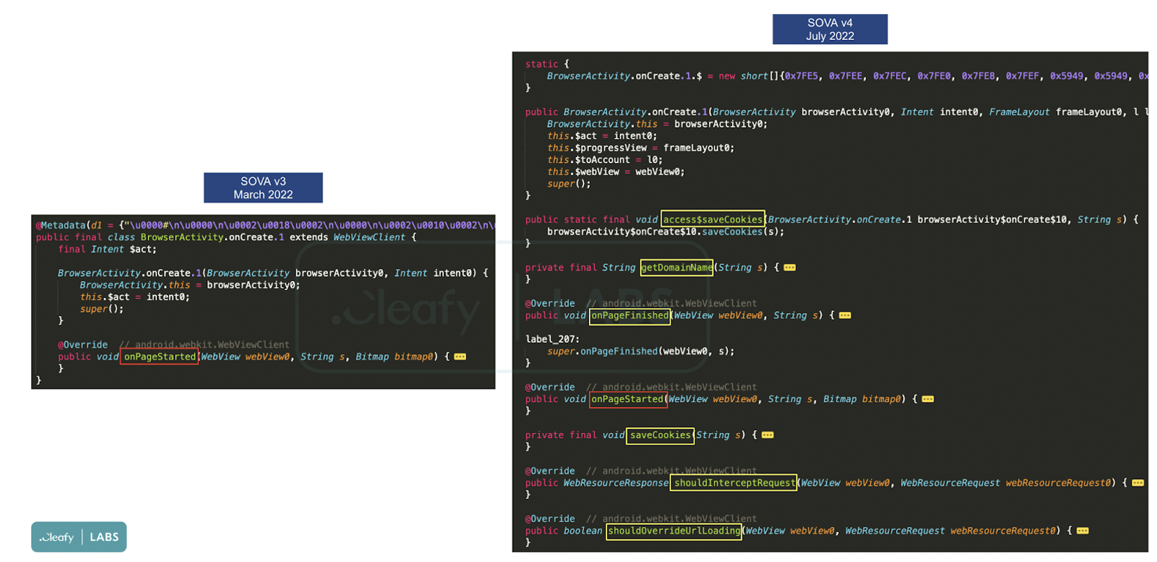 During the reviewing of the document on SOVA v4, we spotted on our threat intelligence platform (Cleafy ASK) multiple samples that seem to belong to a further variant of SOVA (v5); we want to provide you with an overview of this variant too.