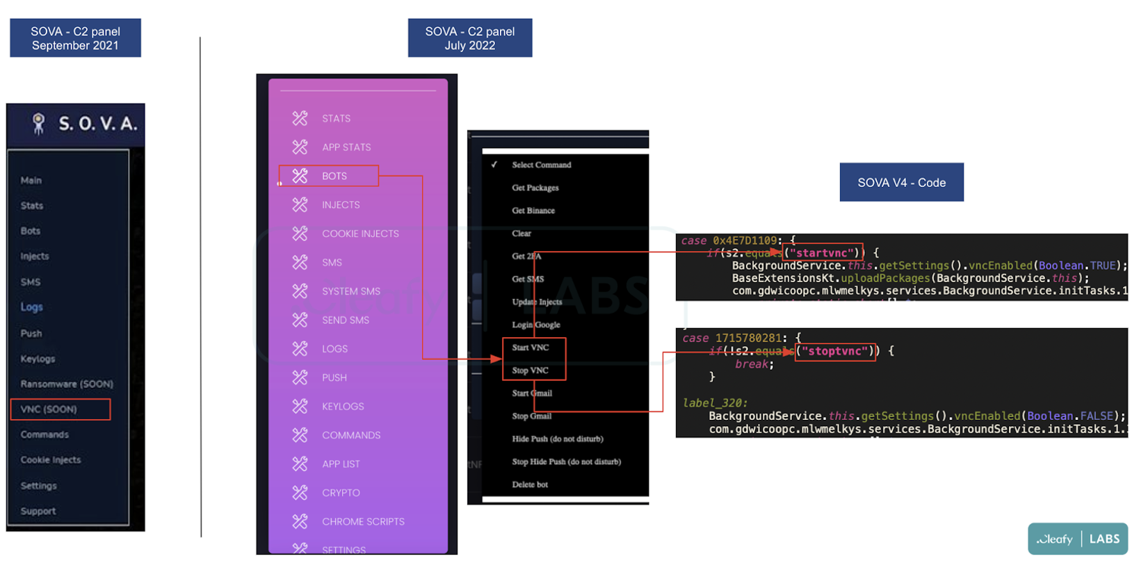 Differently from the previous versions, this time several new codes were added. The most interesting part is related to the VNC capability. As shown in Figure 1, this feature has been in the SOVA roadmap since September 2021 and that is one strong evidence that TAs are constantly updating the malware with new features and capabilities.