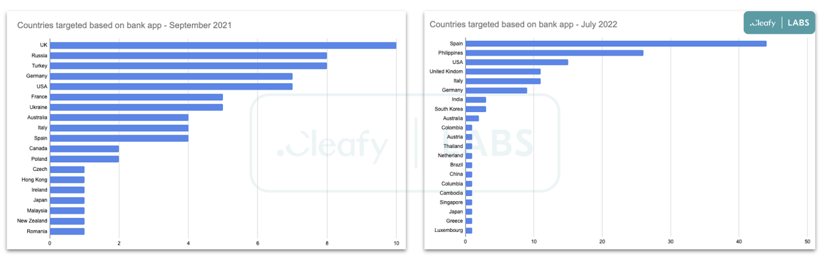 The number of targeted applications has grown faster, compared to the initial phases of SOVA: during March 2022 multiple Philippine banks have been added and then during May 2022, another list of banking applications has been added too, as shown in the following Figure 10.