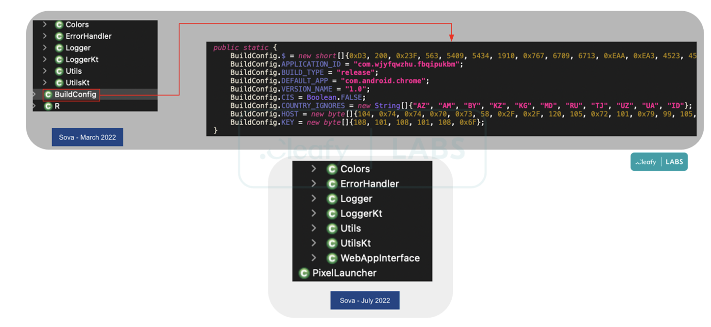 Another interesting fact is that, in some of the analyzed samples of SOVA v4, the list of CIS region used in the previous versions (used to exclude these countries from attacks) was removed and, at the time of writing, all the initial Russian and Ukraine targeted apps were removed.