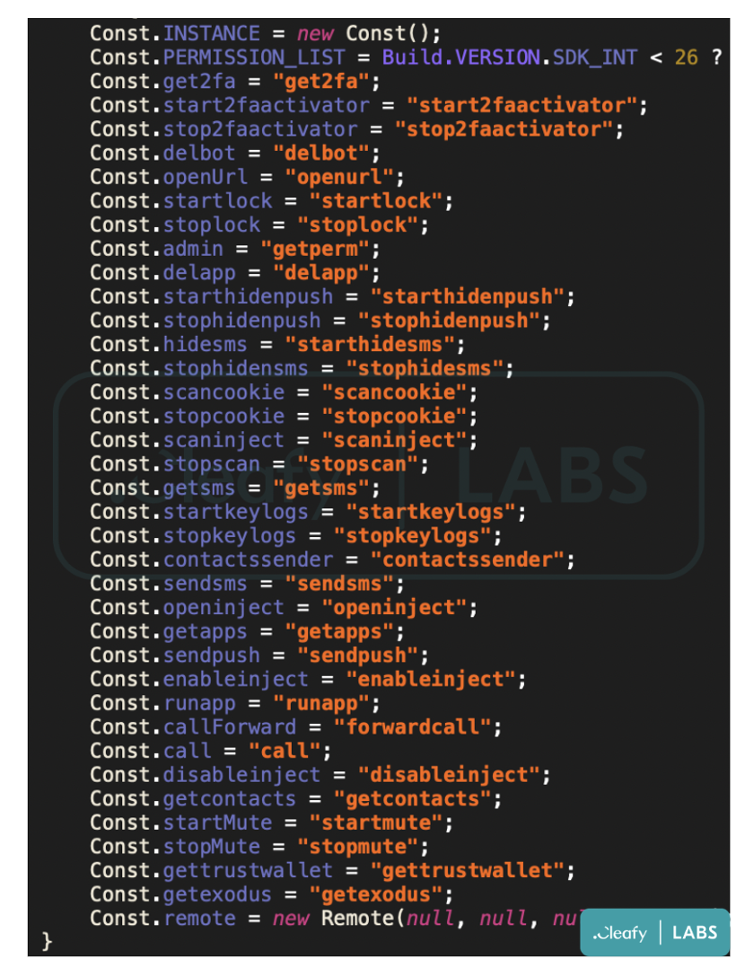 Lastly, in SOVA v4, an entire new module was dedicated to Binance exchange and the Trust Wallet (official crypto wallet of Binance). For both applications, TAs aim to obtain different information, like the balance of the account, different actions performed by the victim inside the app and, finally, even the seed phrase (a collection of words) used to access the crypto wallet.