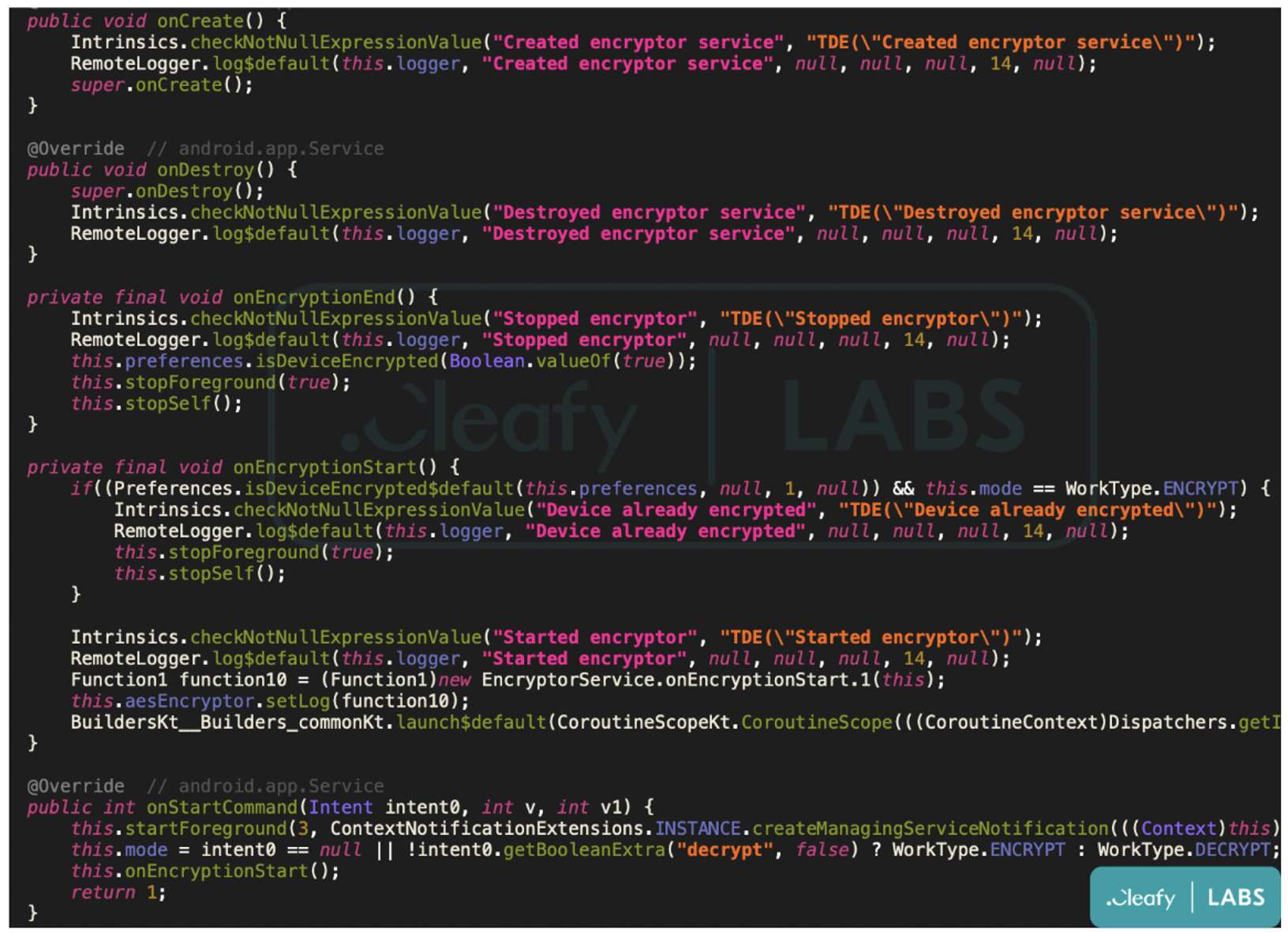 The aim of TAs is to encrypt the files inside the infected devices through an AES algorithm and renaming them with the extension “.enc”.