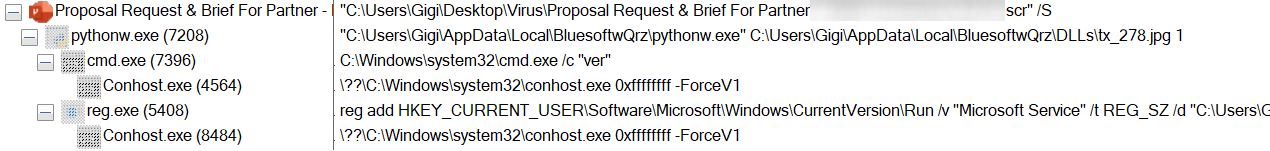 Having identified the target brands and victims, the attackers craft a malicious .scr document disguised as a collaboration offer presentation; this file embeds both BlueDuck infostealer and a full Python environment. The malicious file is then compressed alongside generic brand-related images into a password protected ZIP archive. Finally, the archive is uploaded to file sharing platforms such as Google Drive, Dropbox, and OneDrive.