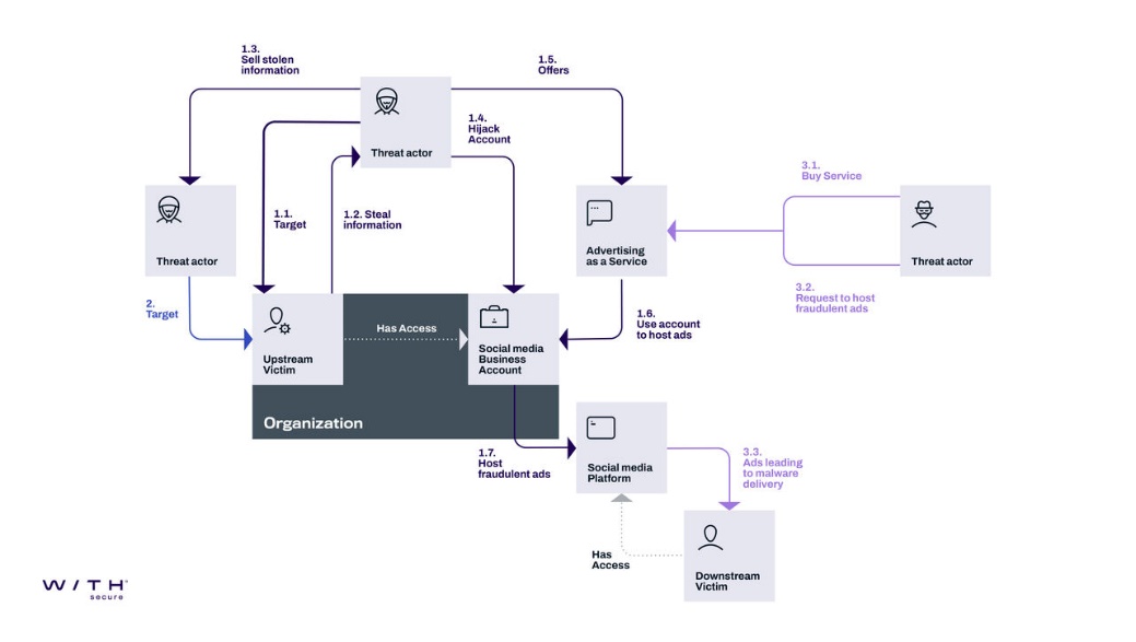 The same tactic of promoting content on social media is leveraged by cybercriminals that want to gain profit inducing people to submit credit cards details or sensitive information on phishing websites, as well as distributing malware. However, the threat actors need legit business accounts to reach the largest possible amount of people and to further legitimize the malicious ads; this need has led to the Advertisement-as-a-Service business (AdaaS).