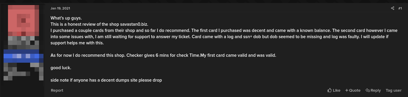 According to the first screenshot below taken from a popular carding forum and posted on the 12th of October 2020, the user/group behind Savastan0 has been being active from around 2010, while the shop is online since 2019 or 2020 (the domain savastan0.biz was registered in 2019).