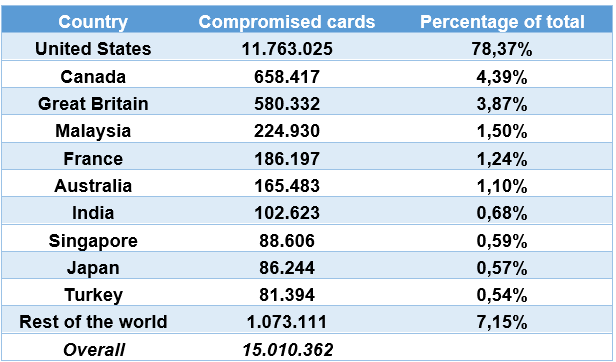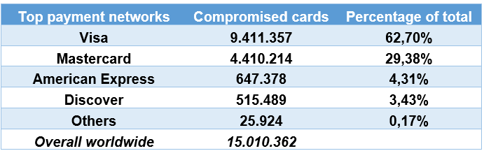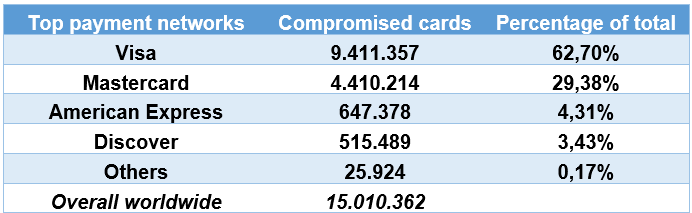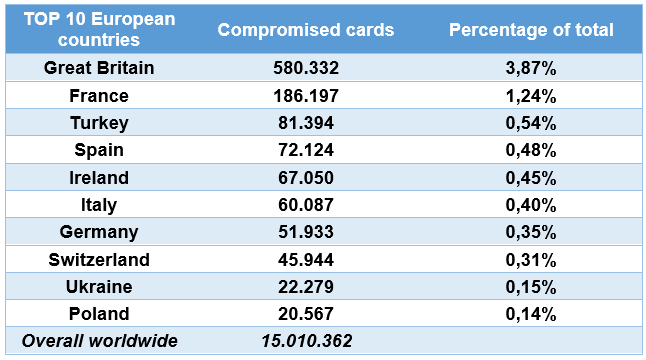 Below are reported some statistics about the most 10 affected countries, the main payment networks involved and a brief focus on the 10 European top countries affected.