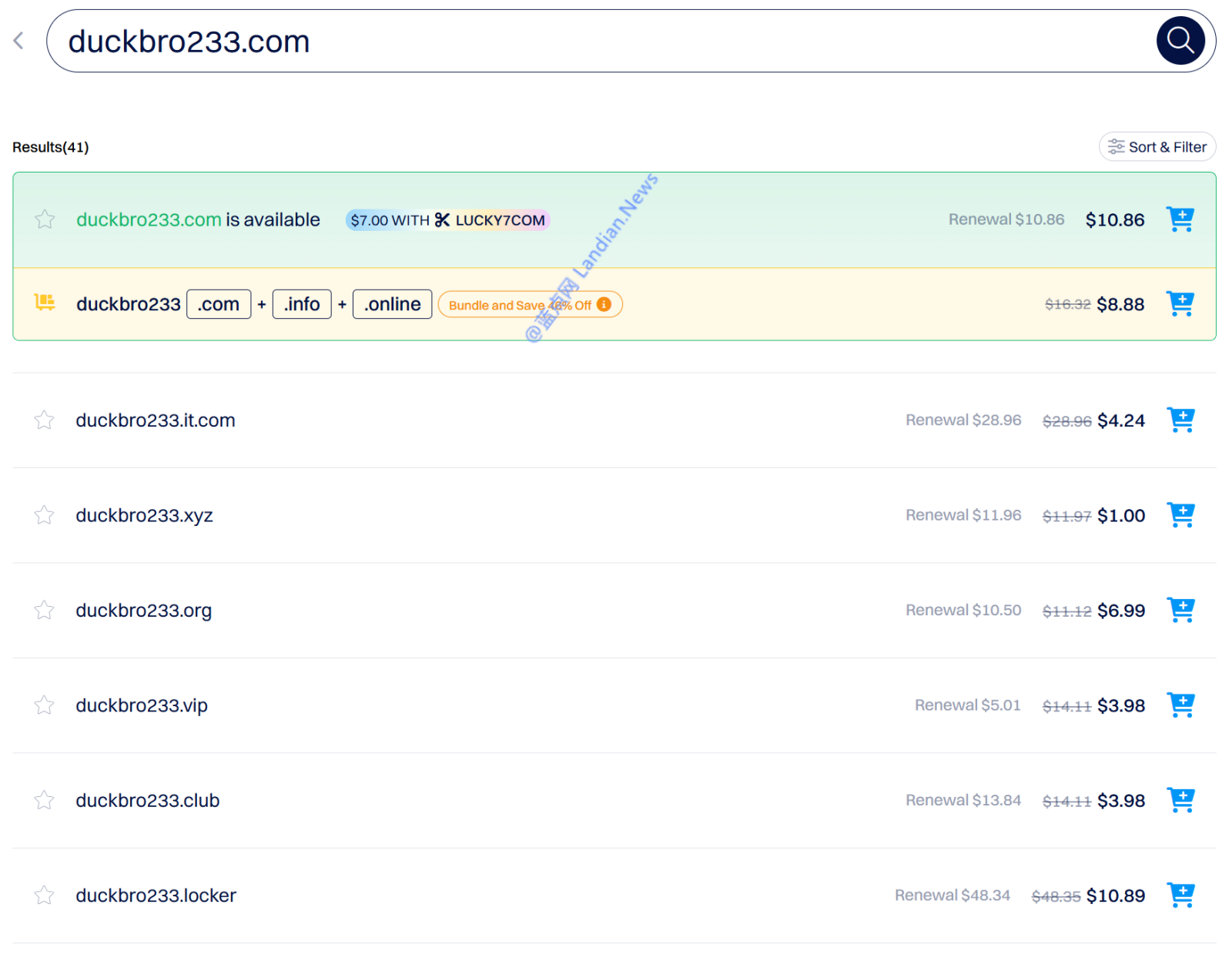 访问 Dynadot 域名搜索页面:https://www.dynadot.com/?domain=duckbro233.com