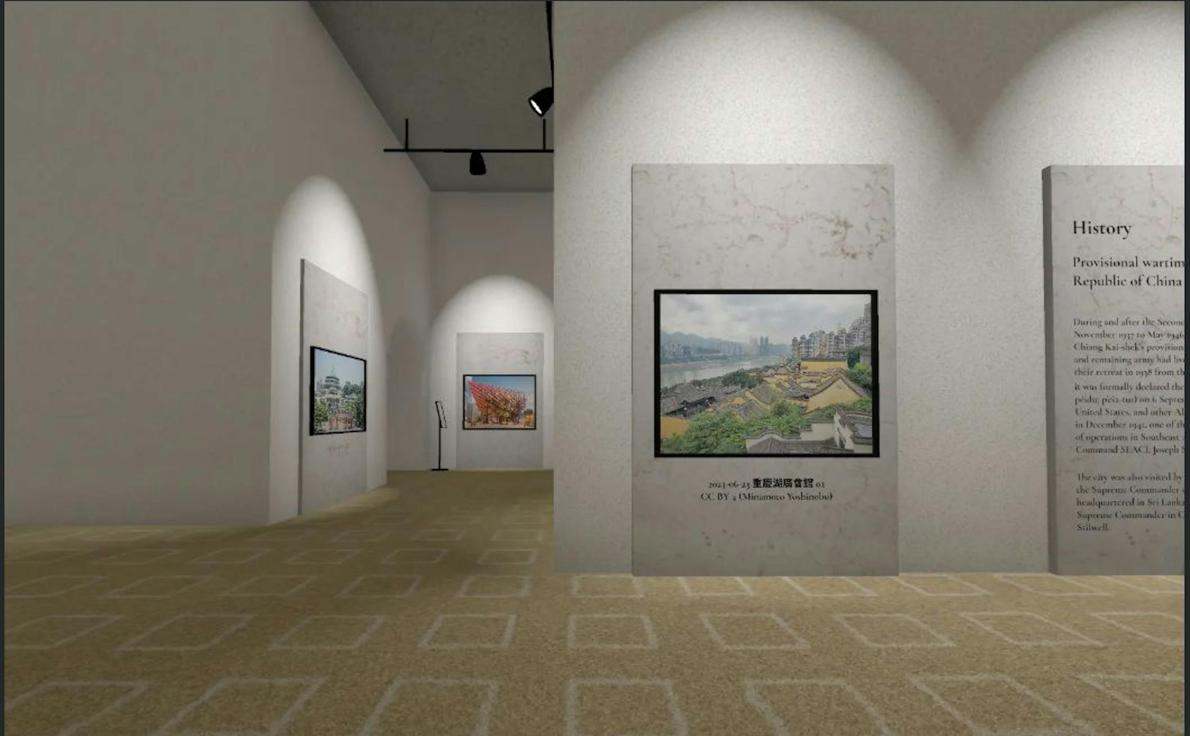 There are several different interior themes used in the exhibits to add visual variety. Ambient sounds and music create an atmosphere. And in addition to the images and text pulled from Wikipedia to fill the exhibits, the museum also pulls images from Wikimedia Commons to make exhibits larger and more interesting to explore.