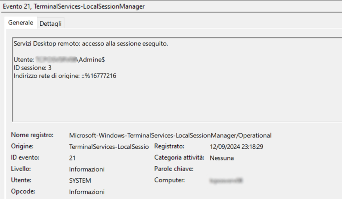 This is a characteristic of the use of Ngrok: in fact, when an RDP tunnel is established through Ngrok, that value is the one that by default, is always left within the RDP protocol log events in the IP address field indicating the source device of the connection.