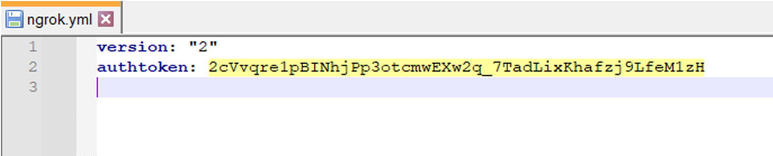 To set up the tunnel you need an authentication token that will be used to allow the connection authenticated by the system with the active service. This token is contained within the configuration file “ngrok.yml”, which was created on the Database server at the path “C:\Windows\System32\config\systemprofile\AppData\Local\ngrok\ngrok.yml”, and was the following value: “2cVvqre1pBINhjPp3otcmwEXw2q_7TadLixKhafzj9LfeM1zH”.