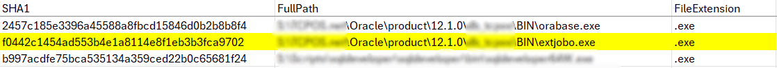 “[REDACTED]\Oracle\product\12.1.0\[REDACTED]\BIN\extjobo.exe”.