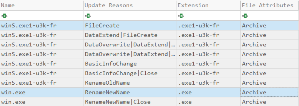 The creation of the “win.exe” process was then detected, which corresponded with the start of the encryption activity on the server.