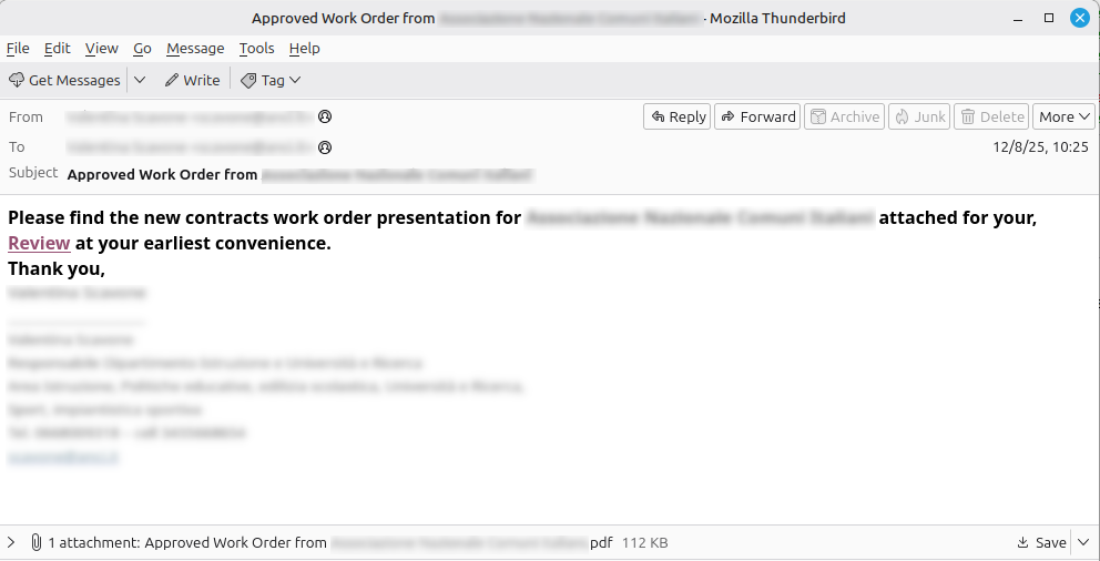 È in corso una campagna malevola che sfrutta account email compromessi di utenti appartenenti alla Pubblica Amministrazione ed è diretta, in modo massivo, verso altri utenti della PA.