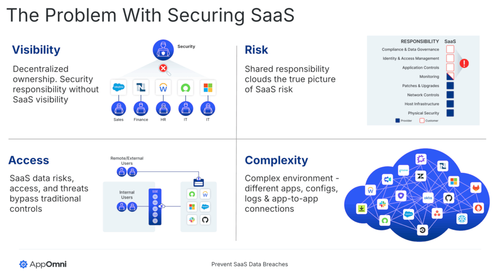 Diagram showing the problems enterprises face when securing SaaS ecosystems
