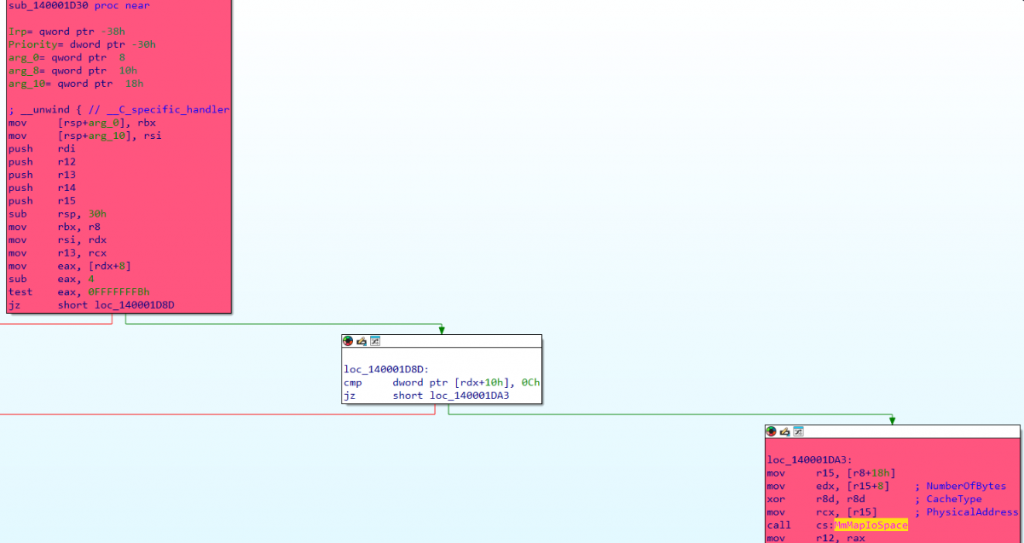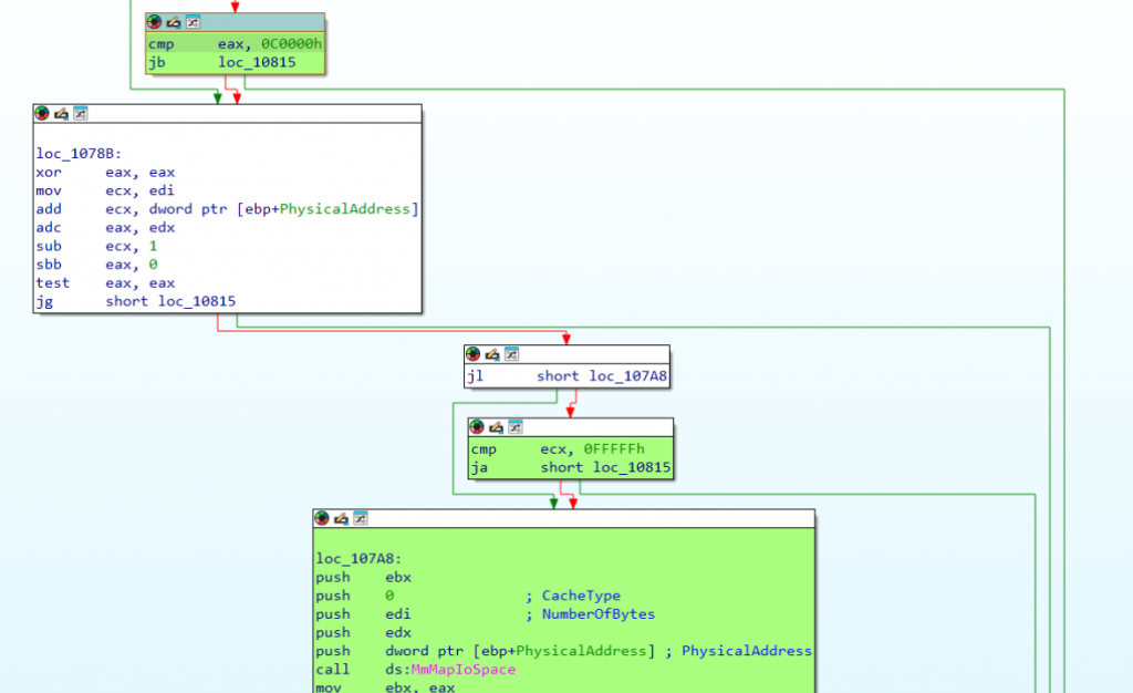 We determined that the vulnerability relates to MmMapIoSpace, a routine that maps a physical address range into nonpaged system space. If a driver allows arbitrary kernel physical addresses to be mapped, an attacker can read from and write to those mapped regions.