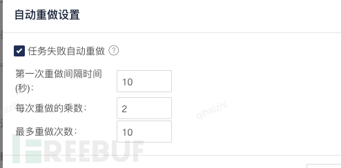 2.最多重做次数是[1,16]间的整数,第一次重试的间隔没有限制,单位是秒。