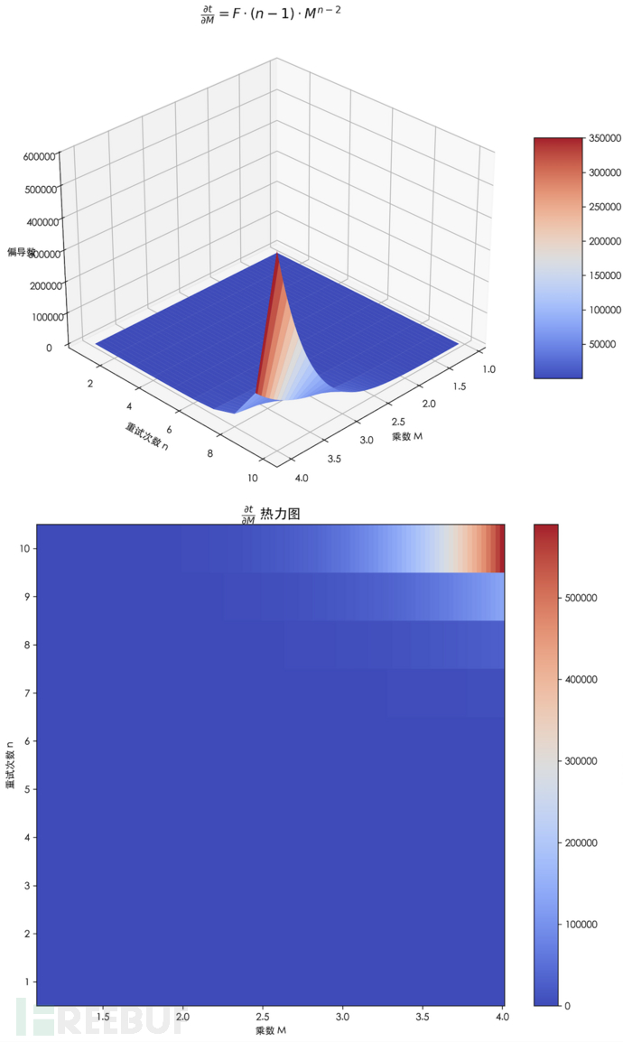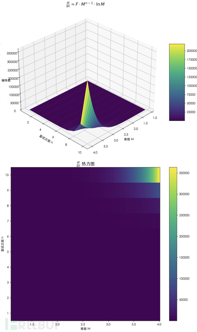 同样的,从下图可以看到,乘数M较大时(比如4),n的细微变化也会导致任务的间隔时间爆发式的增加。
