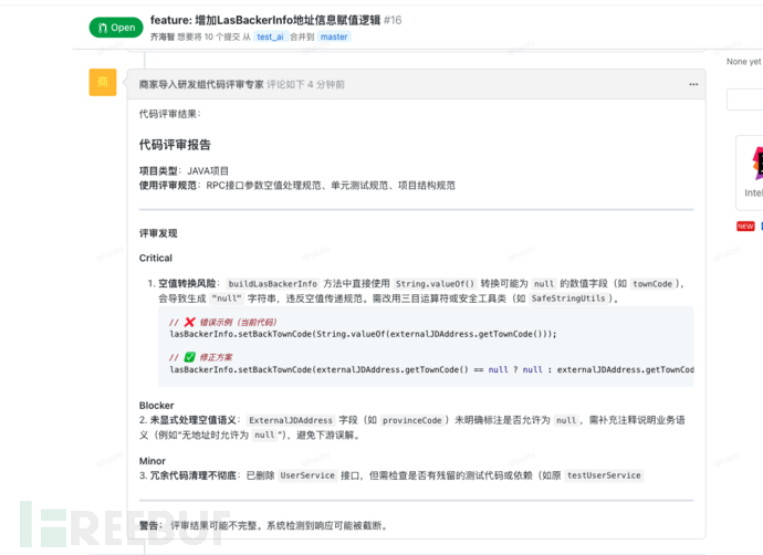 双十一大促是系统稳定性的终极“大考”。为规避上线风险,技术侧会启动系统封板管控,主动将非紧急需求的发布窗口前置。这一举措在保障系统稳定性的同时,也必然导致研发需求的前置与集中,使得封板前的代码评审任务量显著增加。我们面临着一个严峻的“量与质”的挑战: