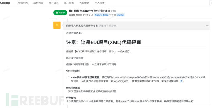 4.输出评审意见:解析大模型的返回结果,通过coding平台API将评审结果添加到MR中。