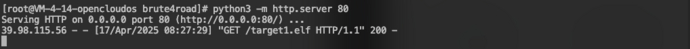 创建HTTP服务以供下载后门文件:python3 -m http.server 80