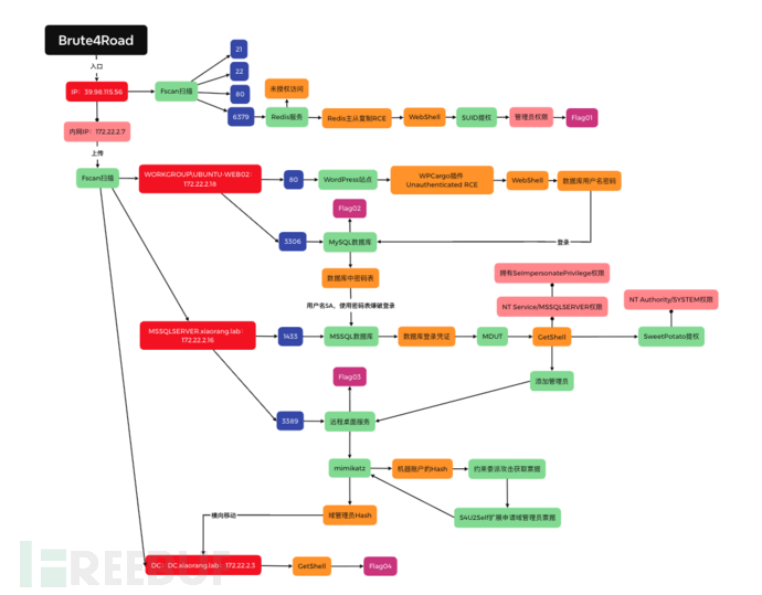 发现5台存活主机:目标 172.22.2.3 DC:DC.xiaorang.lab 目标 172.22.2.7 39.98.115.56 目标 172.22.2.16 MSSQLSERVER.xiaorang.lab 目标 172.22.2.18 WORKGROUP\UBUNTU-WEB02 目标 172.22.2.34 XIAORANG\CLIENT01