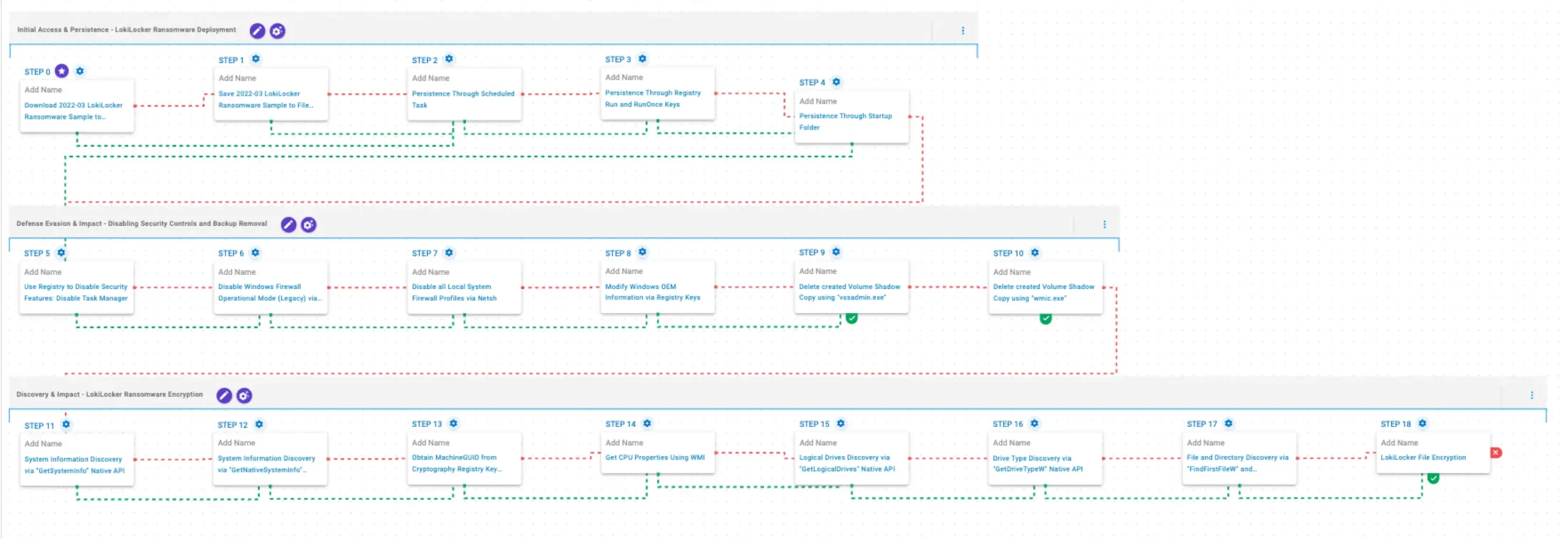 [New!] LokiLocker File Encryption (T1486): This scenario performs the file encryption routines used by common ransomware families. Files matching an extension list are identified and encrypted in place using similar encryption algorithms as used by LokiLocker ransomware.
