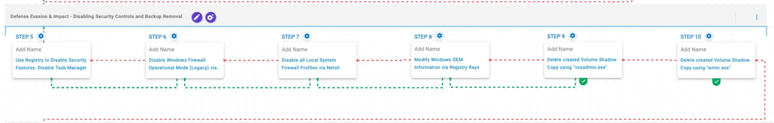 Delete created Volume Shadow Copy using “vssadmin.exe” (T1490): This scenario executes the vssadmin.exe utility to delete a recent Volume Shadow Copy created by the assessment template.