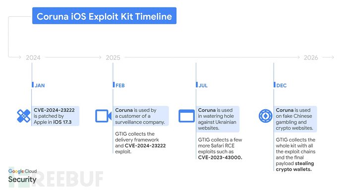 Coruna漏洞利用时间线(来源:谷歌)
