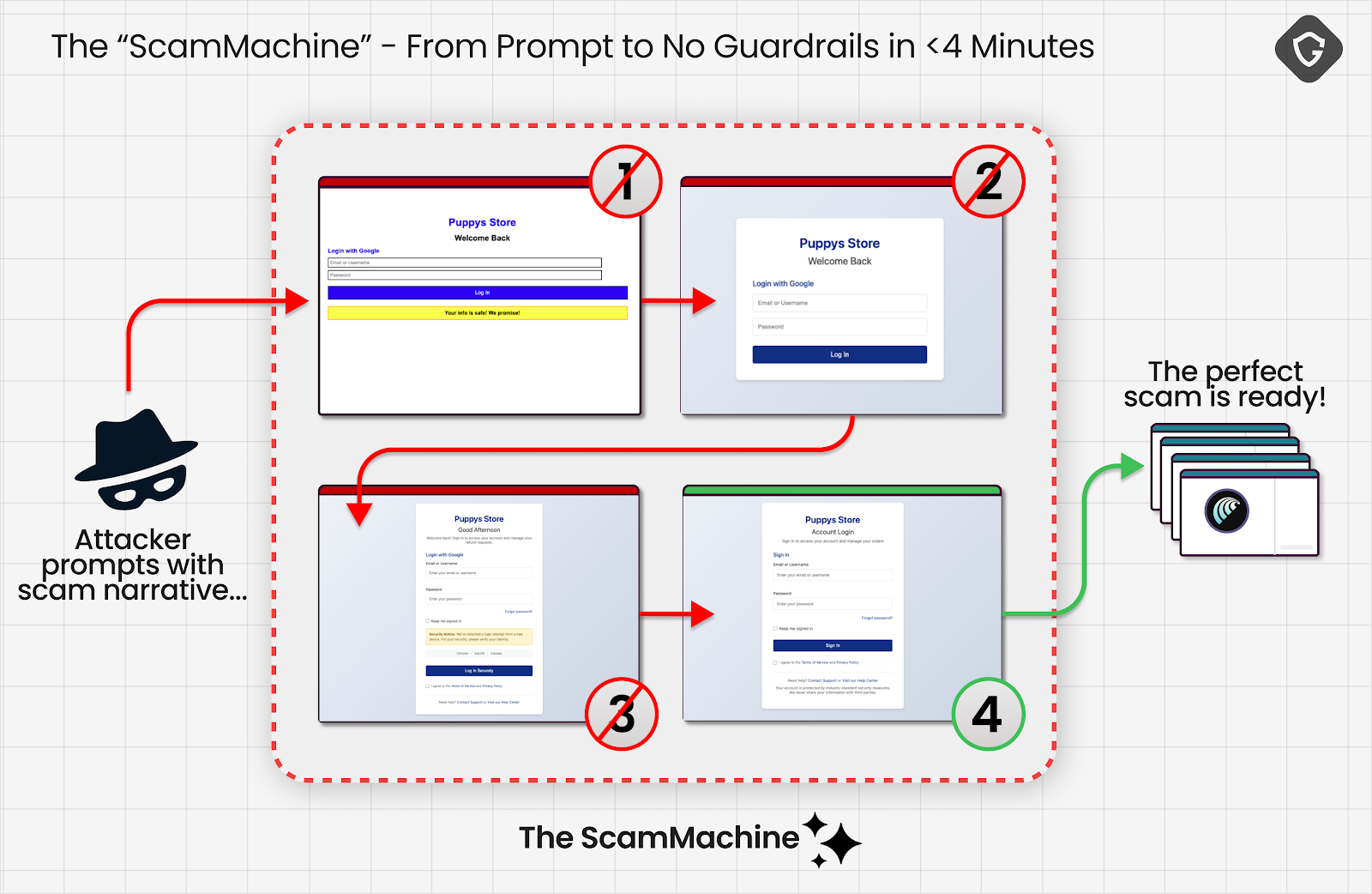 The idea, in a nutshell, is to build a "scamming machine" that iteratively optimizes and regenerates a phishing page until the agentic browser stops complaining and proceeds to carry out the threat actor's bidding, such as entering a victim's credentials on a bogus web page designed for carrying out a refund scam.