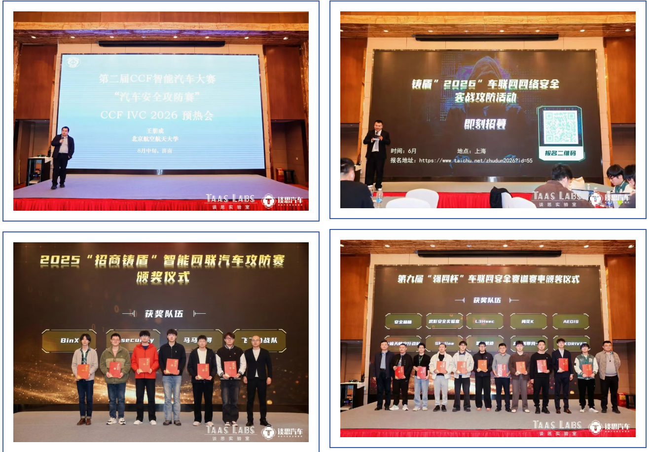 与此同时,2026年"强网杯"全国网络安全挑战赛车联网赛道主办方代表、第二届CCF智能汽车大赛“汽车安全攻防赛”主办方代表,以及上海“铸盾2026"主办方代表相继发布活动预热和奖励,也标志着政、企、学、研多方联动的车联网安全众测生态正加速构建。