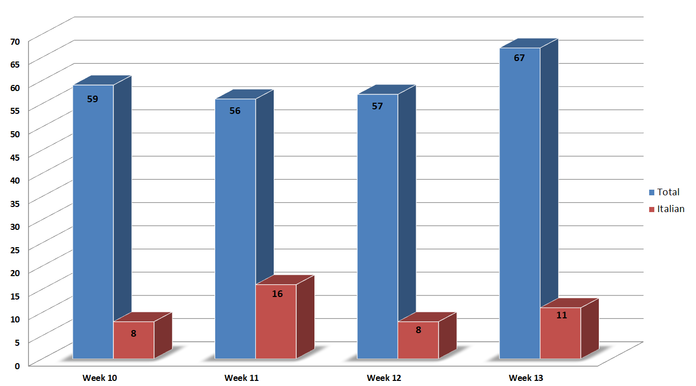 During the week under review, both global campaigns and campaigns in Italian increased compared with the previous week.
