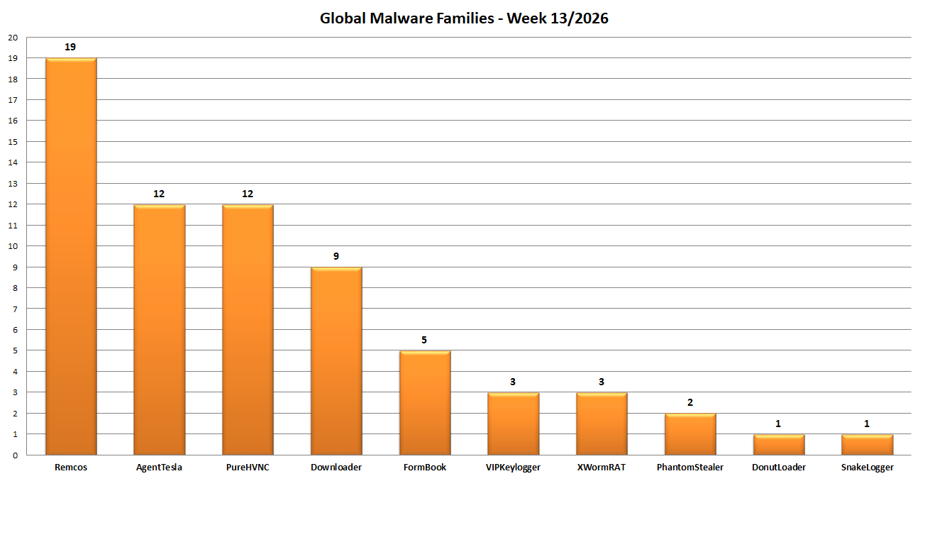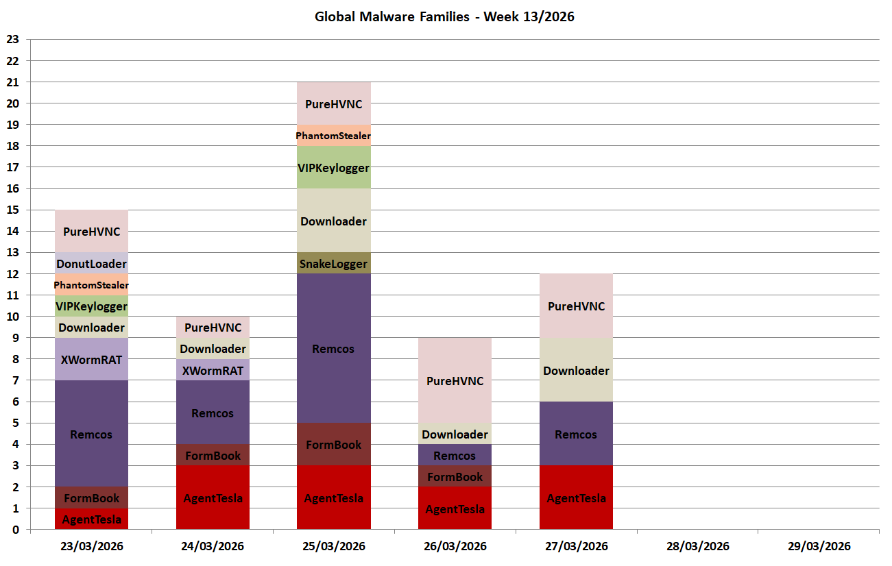 The week was characterized by Password Stealer of the Families: AgentTesla, PhantomStealer, PureHVNC, Remcos and XWormRAT.