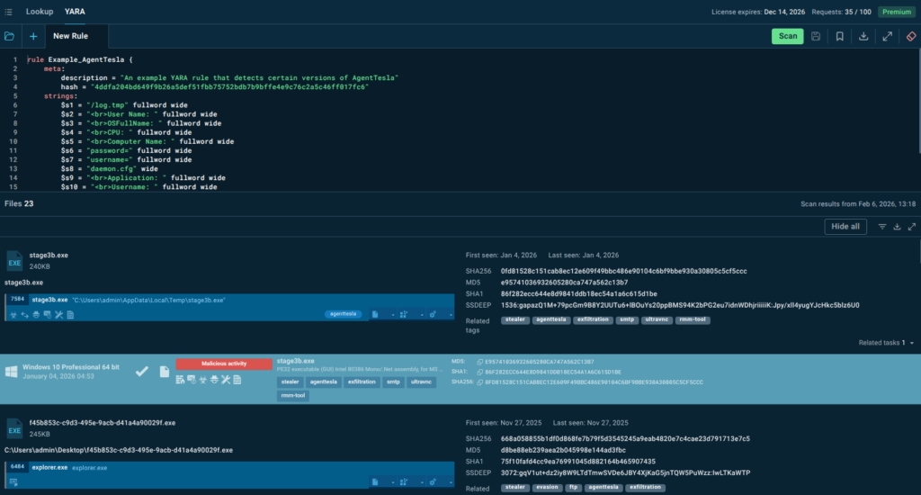 Threat intelligence becomes particularly valuable when it directly translates into detections. YARA Search enables that by helping analysts test, refine, validate, and create YARA rules to ensure coverage of relevant threats with reduced false positives.