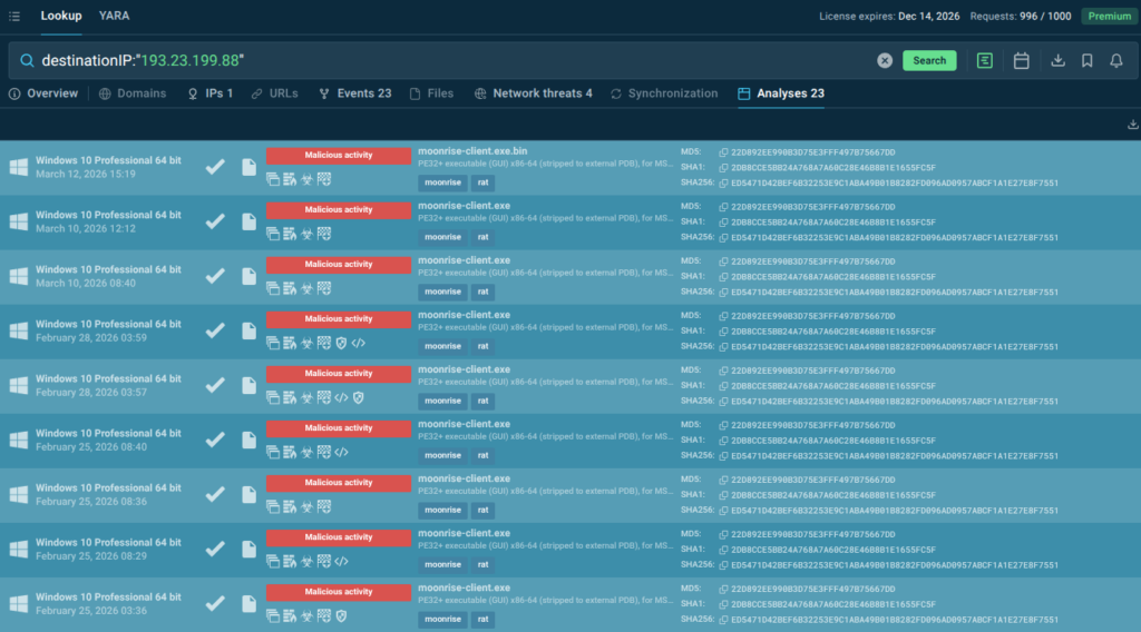Instead of treating indicators as isolated data points, with Threat Intelligence Lookup (TI Lookup), a solution for instant enrichment and threat research, analysts immediately see how they behave in real attacks. Any artifact (IP, domain, hash, or URL) is enriched with execution context, infrastructure relationships, and associated TTPs.