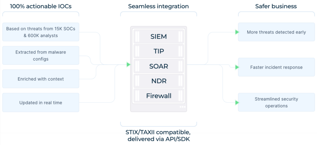 This is threat intelligence that doesn’t exist beside your SOC, but an essential operational layer within it that turns repetitive work into a scalable workflow where each detection enhances overall security and proactive protection from similar threats in the future.