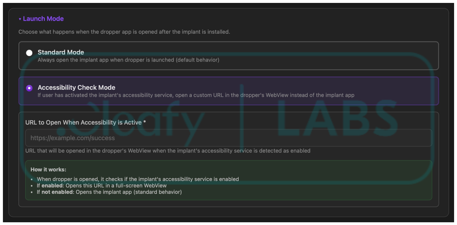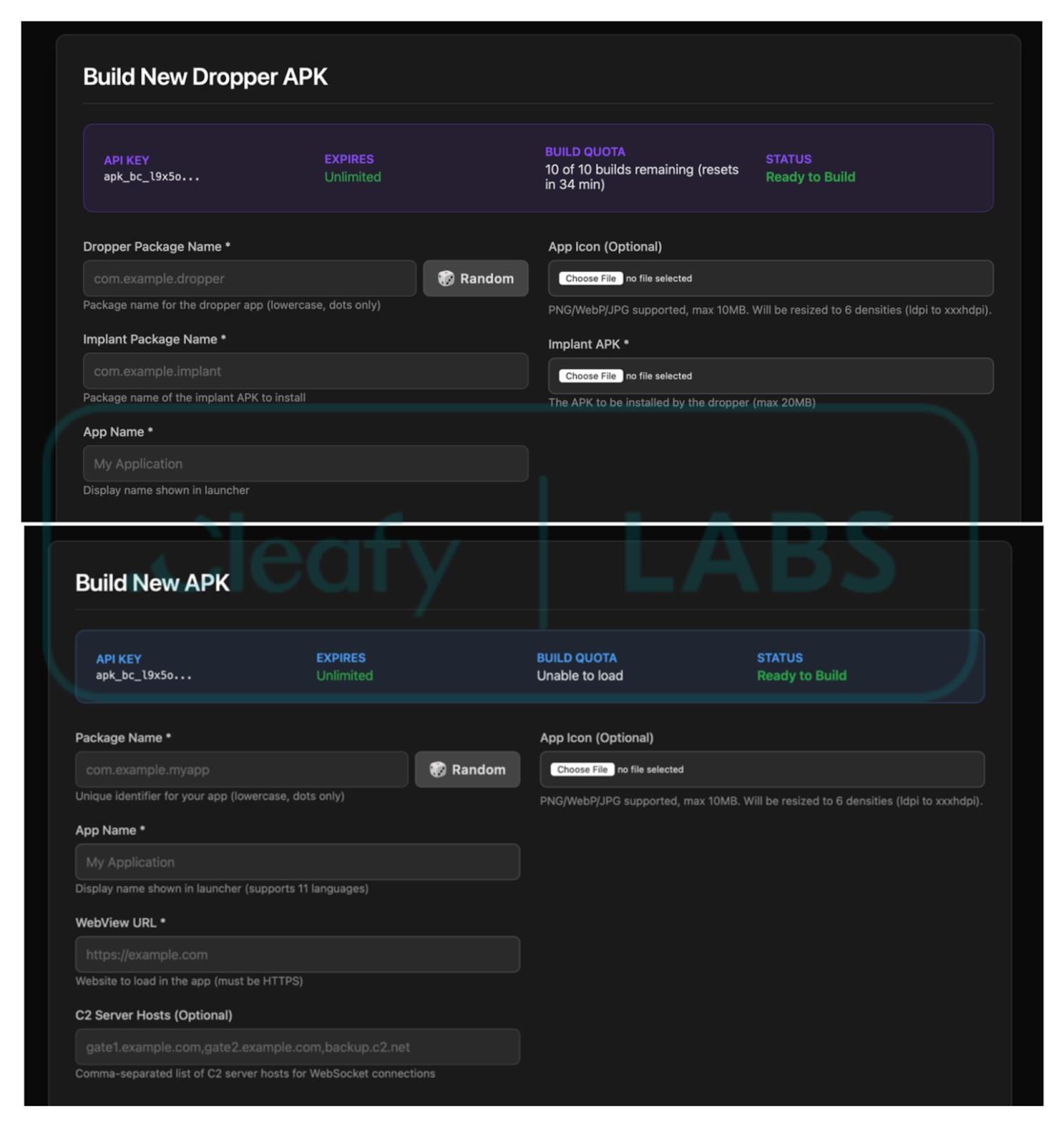 Moreover, the image below shows a section of the builder, confirming that the malware loads a WebView with a custom HTML page when Accessibility Services have been granted, as observed during analysis.